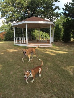 Early this morning I sought solitude at the gazebo that Phyllis and Larry finished only a few months ago.  I went looking for peace and was of course, followed by my loyal companion, Cooper.  He is a one-year-old Great Dane/German Shepherd and he has not left my side since we arrived.  (Phyllis, he does not come in the house!)