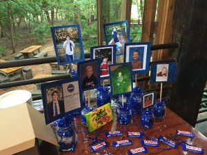 The day Bryce graduated from high school, the entire family came to celebrate. We ate lunch in a private room at The Gristmill. The windows were open to this glorious, rainy day and the room was decked out with blue and white decor, and baby pictures of my little man-child.